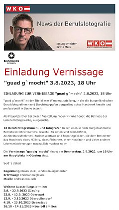 Die Landesinnung der Berufsfotografie OÖ präsentiert ihr spezielles Förderprogramm, bei dem 2 freie, eigene Projekte von der Landesinnung ausgewählt und mit je 7.000,- € unterstützt werden.